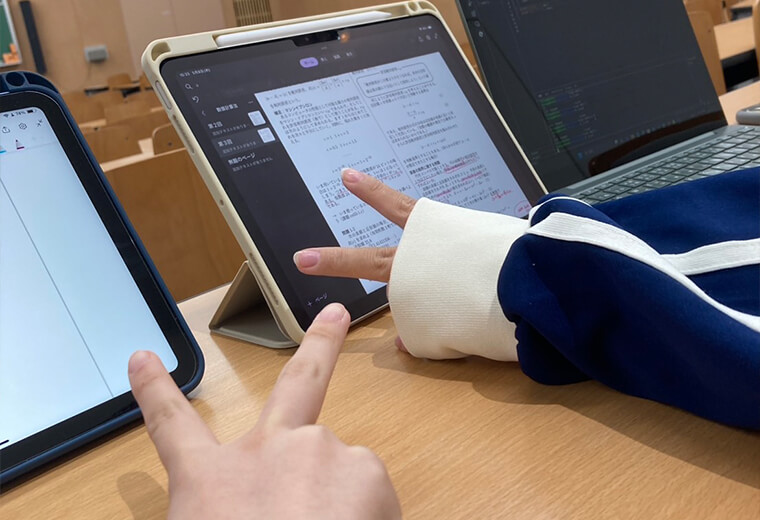 教科書を中心に学びますが、自分のパソコンやiPadも活用して、友達と情報交換しながら切磋琢磨して取り組んでいます。試験の過去問からテストが出たりするので、難しい問題もありますがやりがいを感じています。