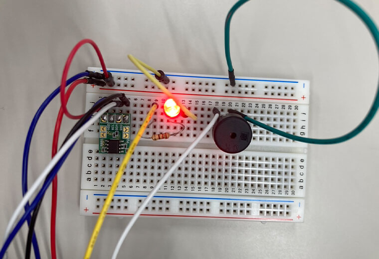 第9週目以降は「IoT」の課題です。LED回路をつくってプログラミングで光らせたり、温度センサーで検温したり、クラウドに送信してグラフ作成したり、AIで画像に文字や記号を入れたり、実際に作るとなると難しいIoTの仕組みですが、友達と協力しながら助け合うと良い勉強になります。先生にも質問して毎授業でしっかり課題を乗り切るようにしています。